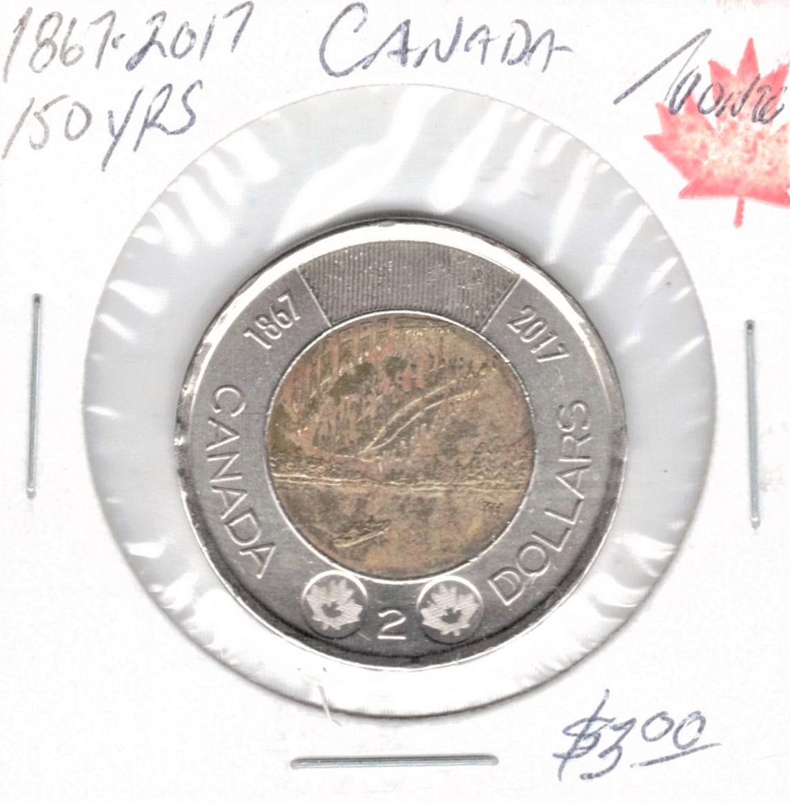 2017 Canadian Two Dollar Coin - Uncoloured Northern Lights Canada 150th. This Toonie is another of the Special Minted Toonies this is the non coloured version 2 dollars 2017 - 150 years : 10,000,000 hard to obtain due to the very limited number minted