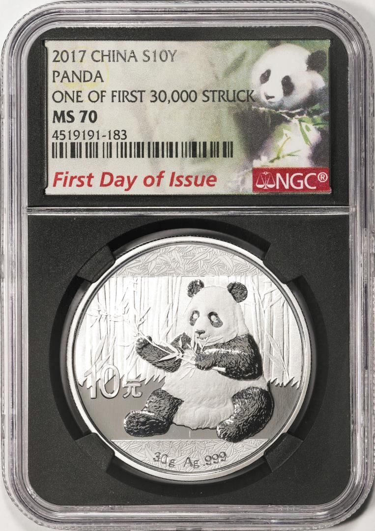 2017 China 10 Yuan Silver Panda Coin NGC MS70 First Day Of Issue