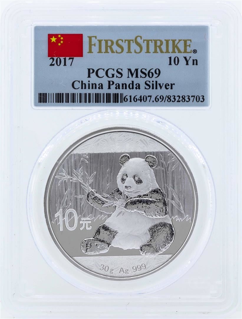 One 2017 China 10 Yuan Silver Panda Coin PCGS MS69. PCGS Graded.
