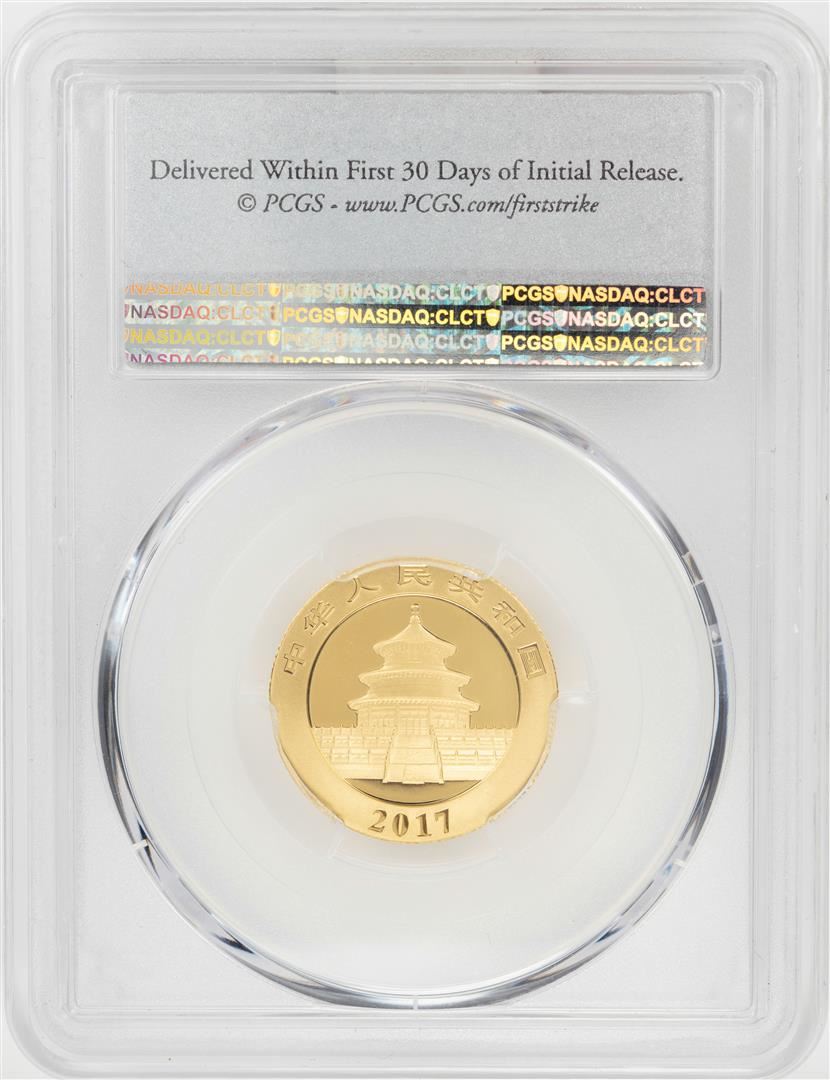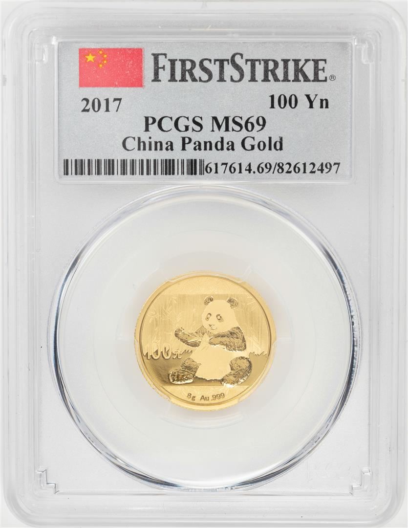One 2017 China 100 Yuan Panda Gold Coin PCGS MS69 First Strike. PCGS Graded.