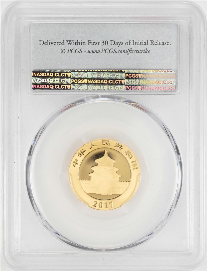 One 2017 China 100 Yuan Panda Gold Coin PCGS MS69 First Strike. PCGS Graded.