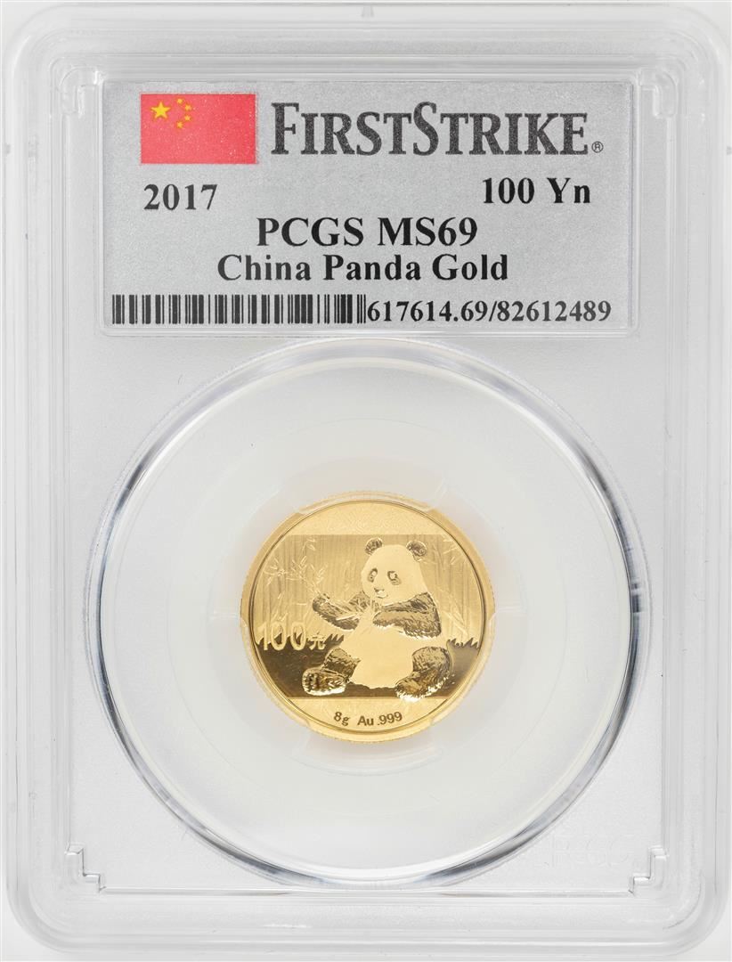 One 2017 China 100 Yuan Panda Gold Coin PCGS MS69 First Strike. PCGS Graded.