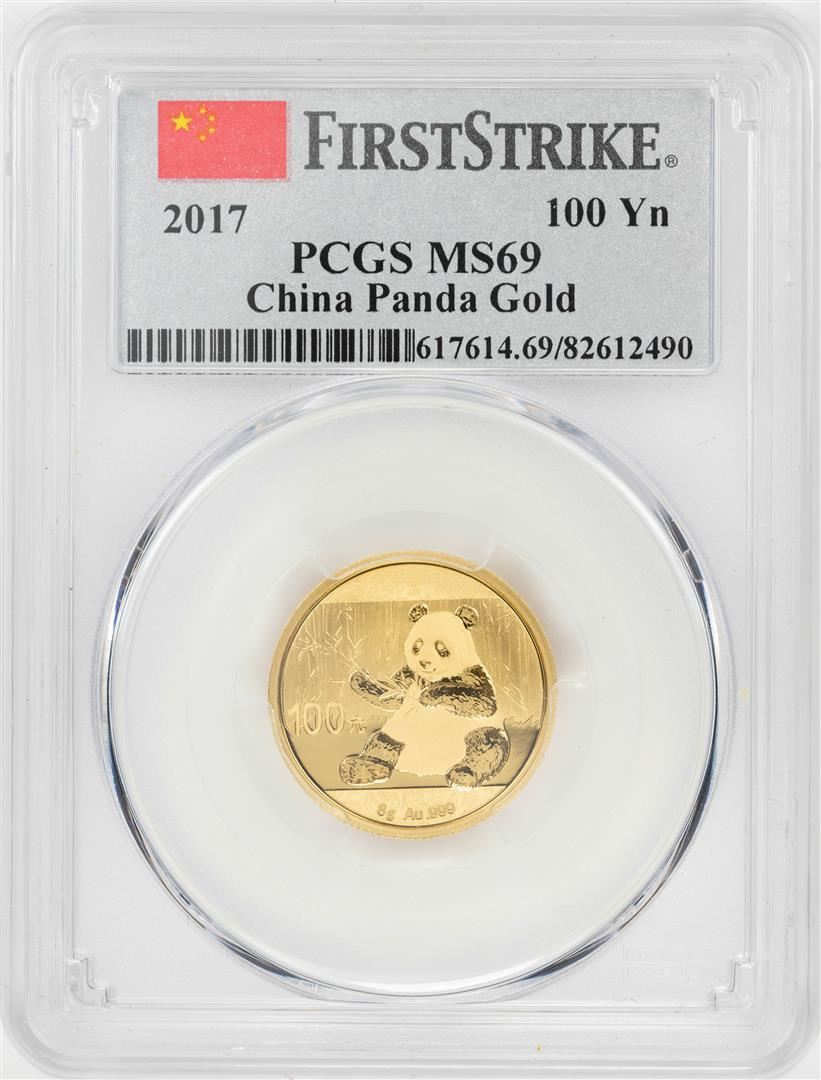 One 2017 China 100 Yuan Panda Gold Coin PCGS MS69 First Strike. PCGS Graded.