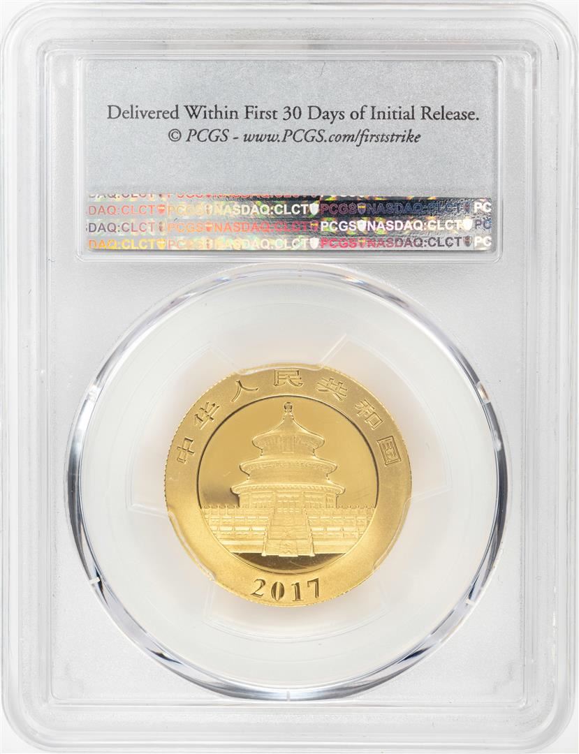 One 2017 China 200 Yuan Panda Gold Coin PCGS MS70 First Strike. PCGS Graded.