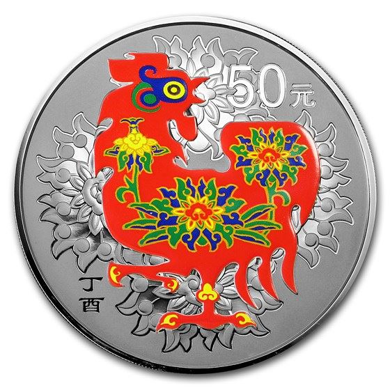 One piece 2017 China 5 oz Silver Rooster PF (Colorized\, w/Box & COA)