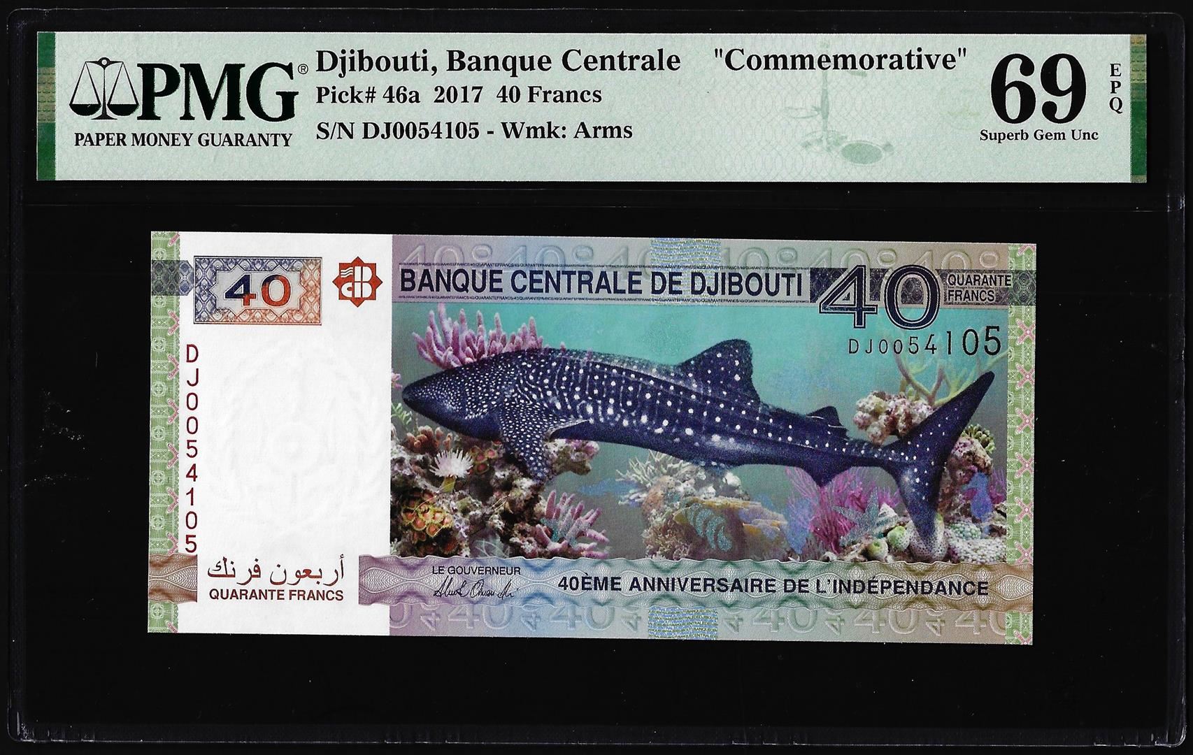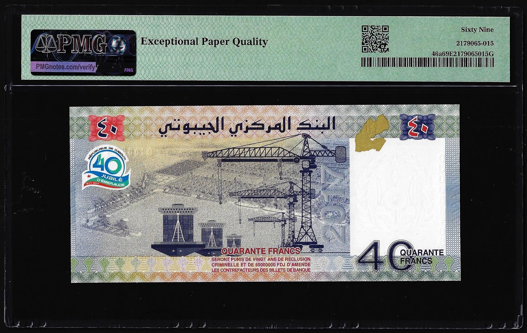 2017 Djibouti Central Bank 40 Francs Note Pick# 46a PMG Superb Gem Uncirculated 69EPQ
