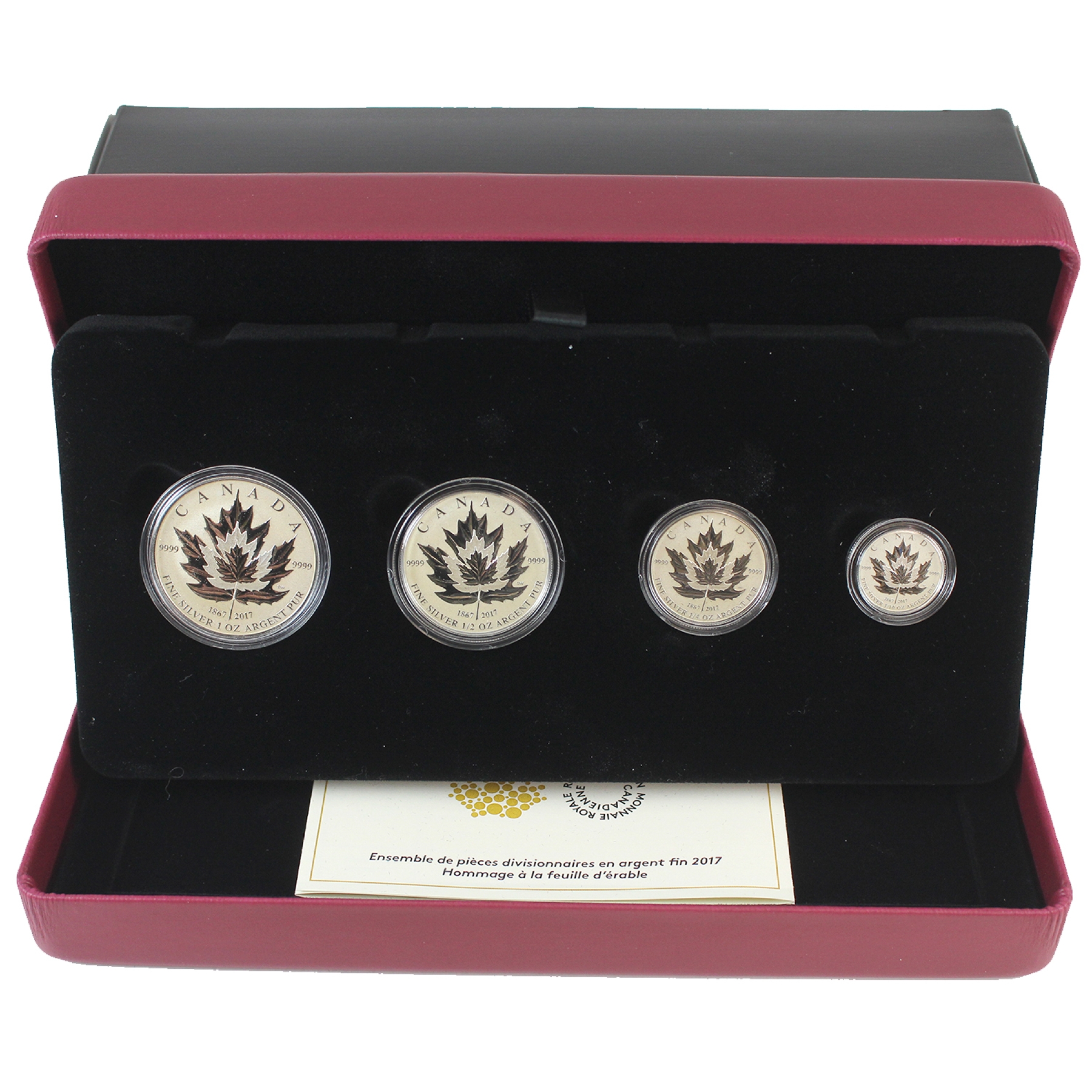 Features rare, double dated (1867-2017), and highly collectible fractional coins in 1, ½, 1/4, 1/10 oz of 99.99% pure silver. Coins are toned. Outer box has some damage. (Tax Exempt)