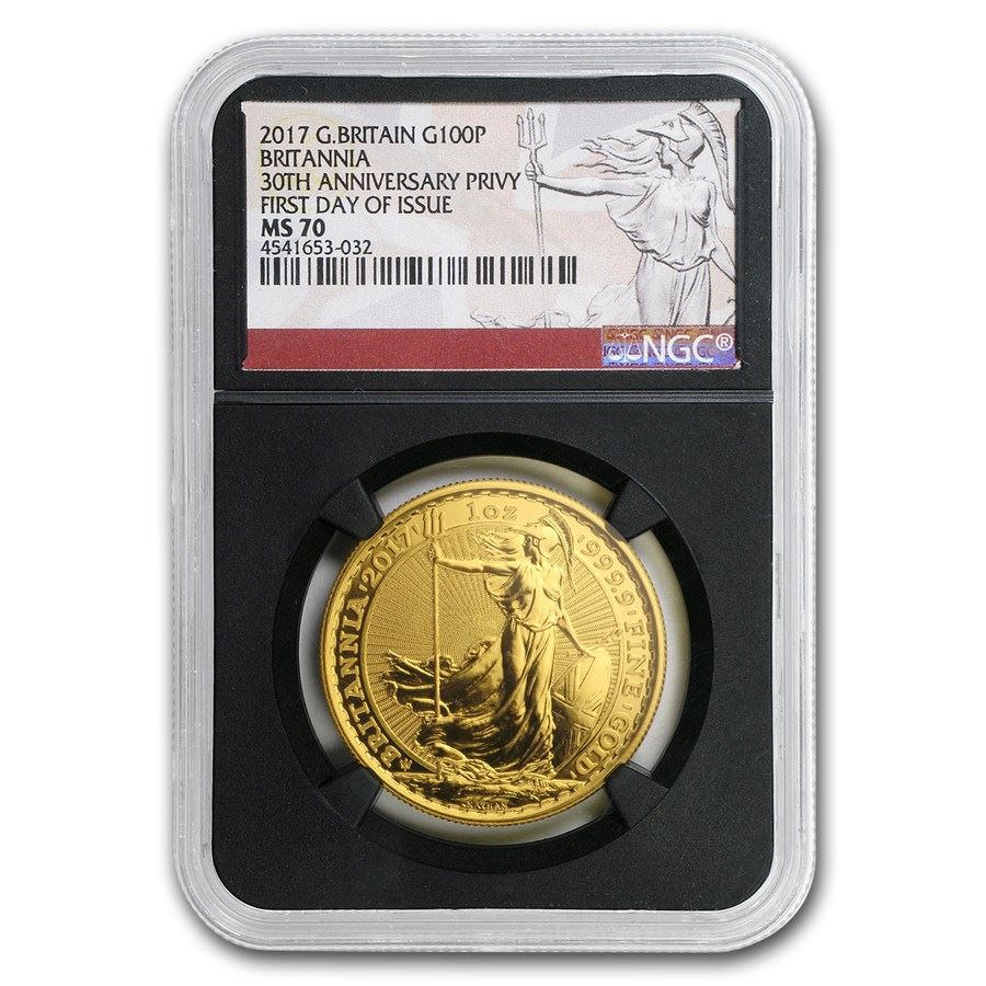 2017 GB 1 oz Gold Britannia 30th Anniv MS-70 NGC (First Day)