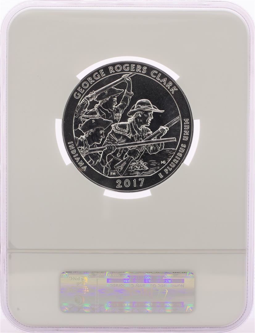 One 2017 George Rogers Clark ATB 5 oz Silver Coin Mint Obv. Struck Thru Error NGC MS69 DPL. NGC Certified.