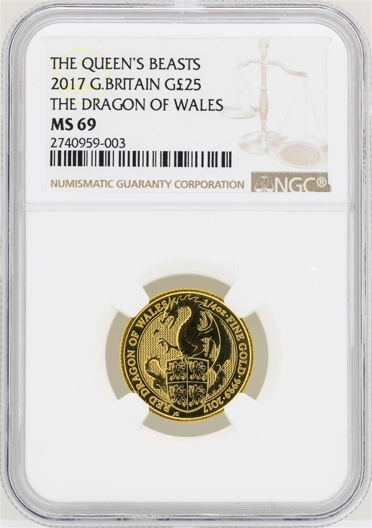 One 2017 Great Britain 2£ The Queens Beast Gold Coin NGC MS69. NGC Certified.