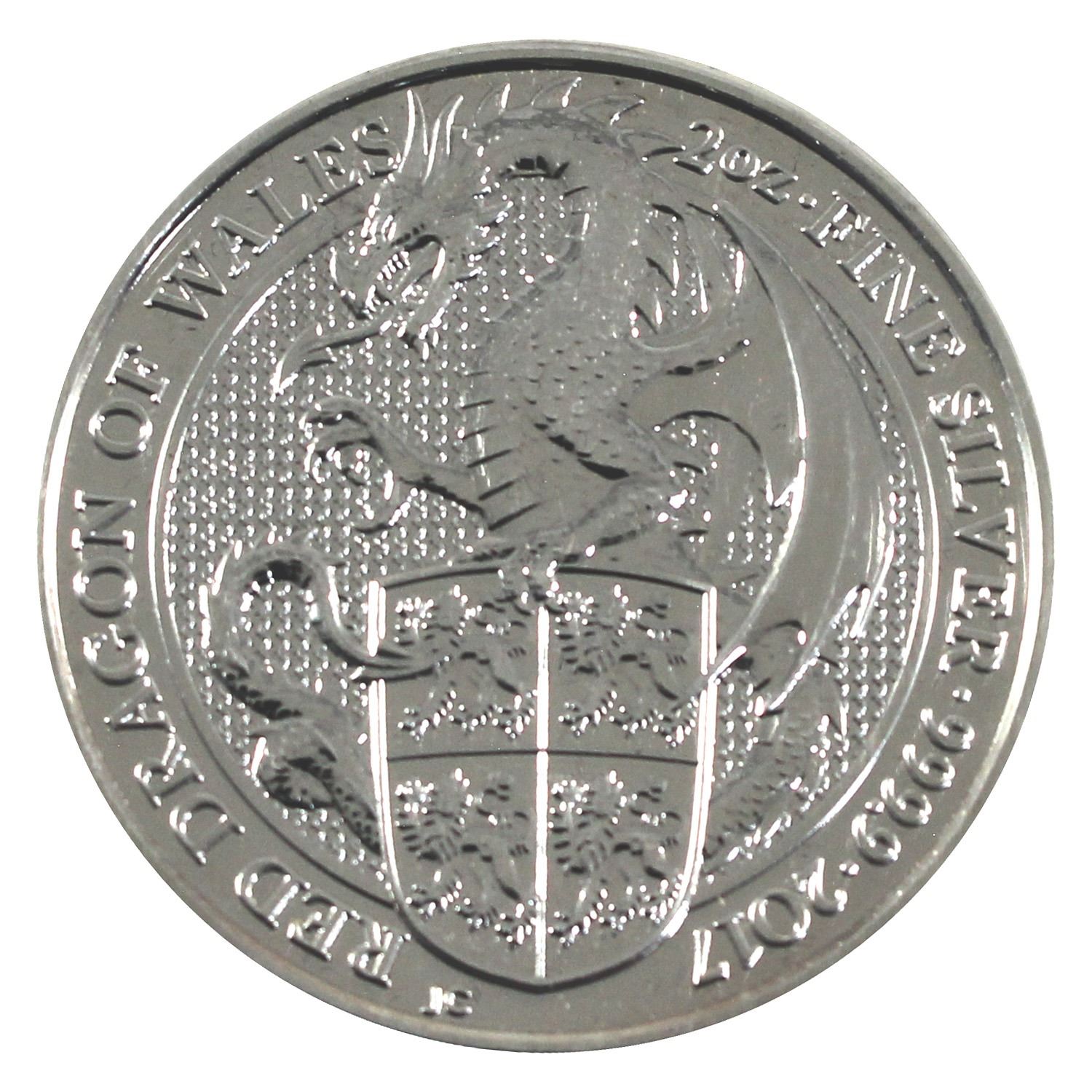 2017 Great Britain 2oz Queen's Beasts - Red Dragon of Wales .9999 Fine Silver Coin Encapsulated. (TAX Exempt)