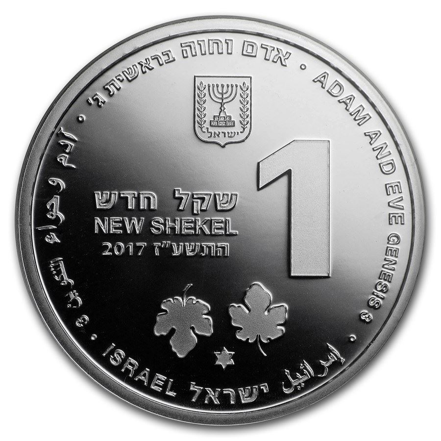 2017 Israel Silver 1 NIS Adam and Eve Prooflike
