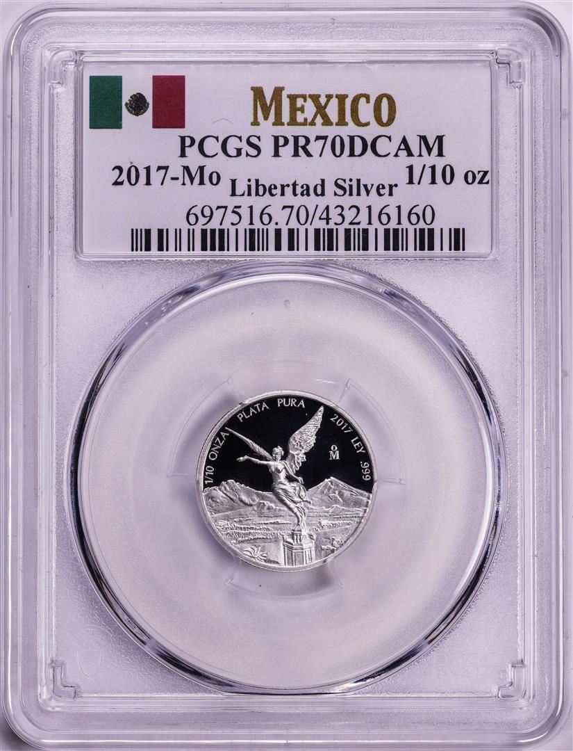 One 2017-Mo Mexico Proof 1/10 oz Silver Libertad Coin PCGS PR70DCAM. PCGS Graded.