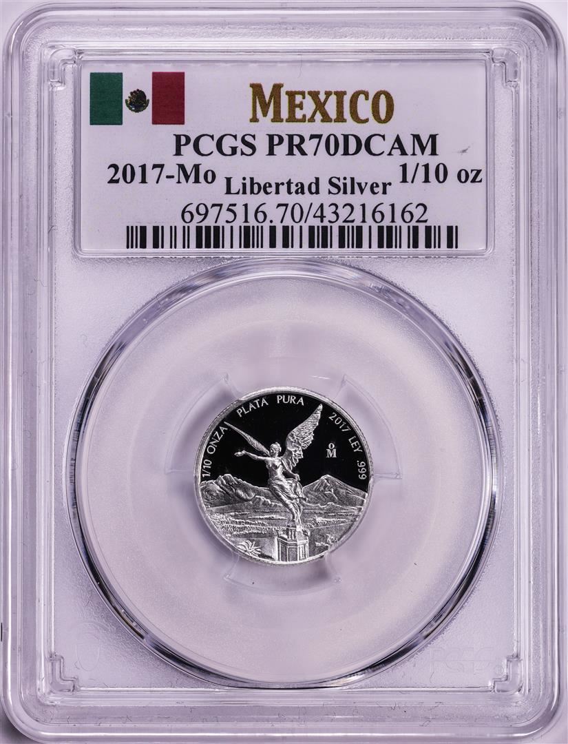 One 2017-Mo Mexico Proof 1/10 oz Silver Libertad Coin PCGS PR70DCAM. PCGS Graded.