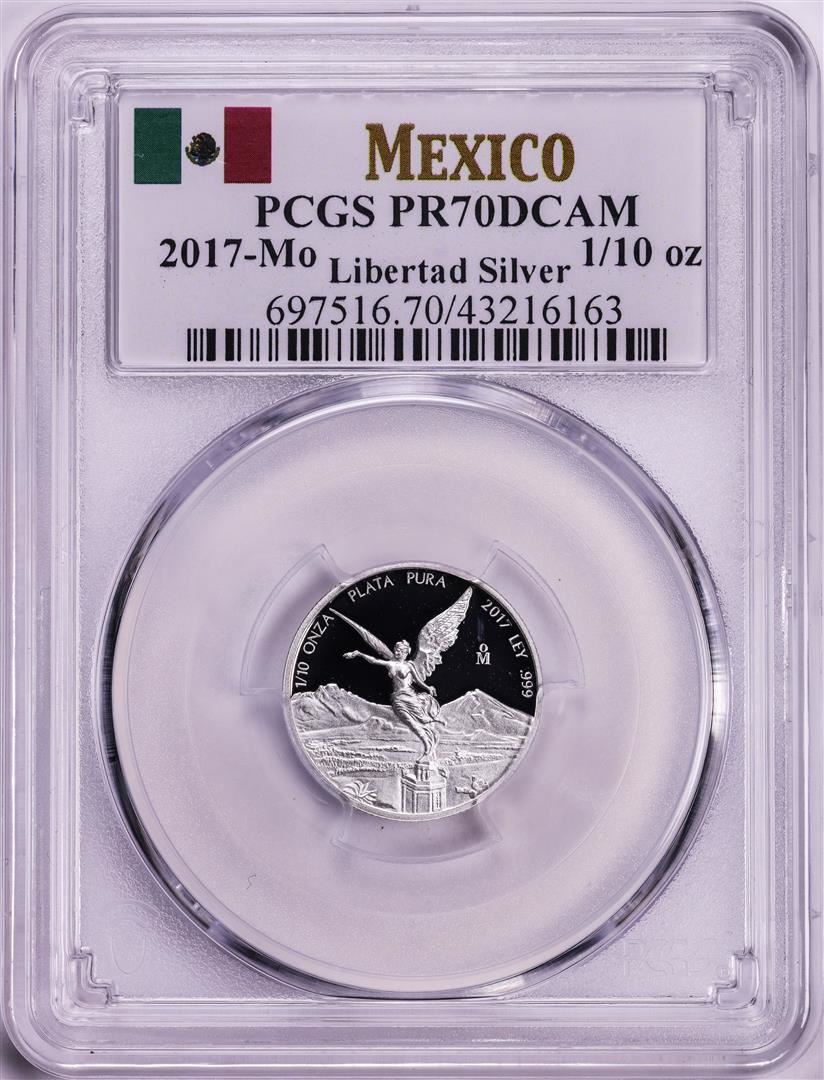 One 2017-Mo Mexico Proof 1/10 oz Silver Libertad Coin PCGS PR70DCAM. PCGS Graded.