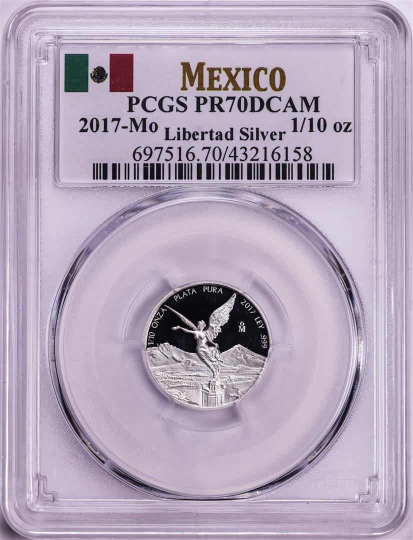One 2017-Mo Mexico Proof 1/10 oz Silver Libertad Coin PCGS PR70DCAM. PCGS Graded.