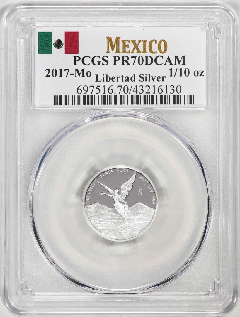 One 2017-Mo Mexico Proof 1/10 oz Silver Libertad Coin PCGS PR70DCAM. PCGS Graded.