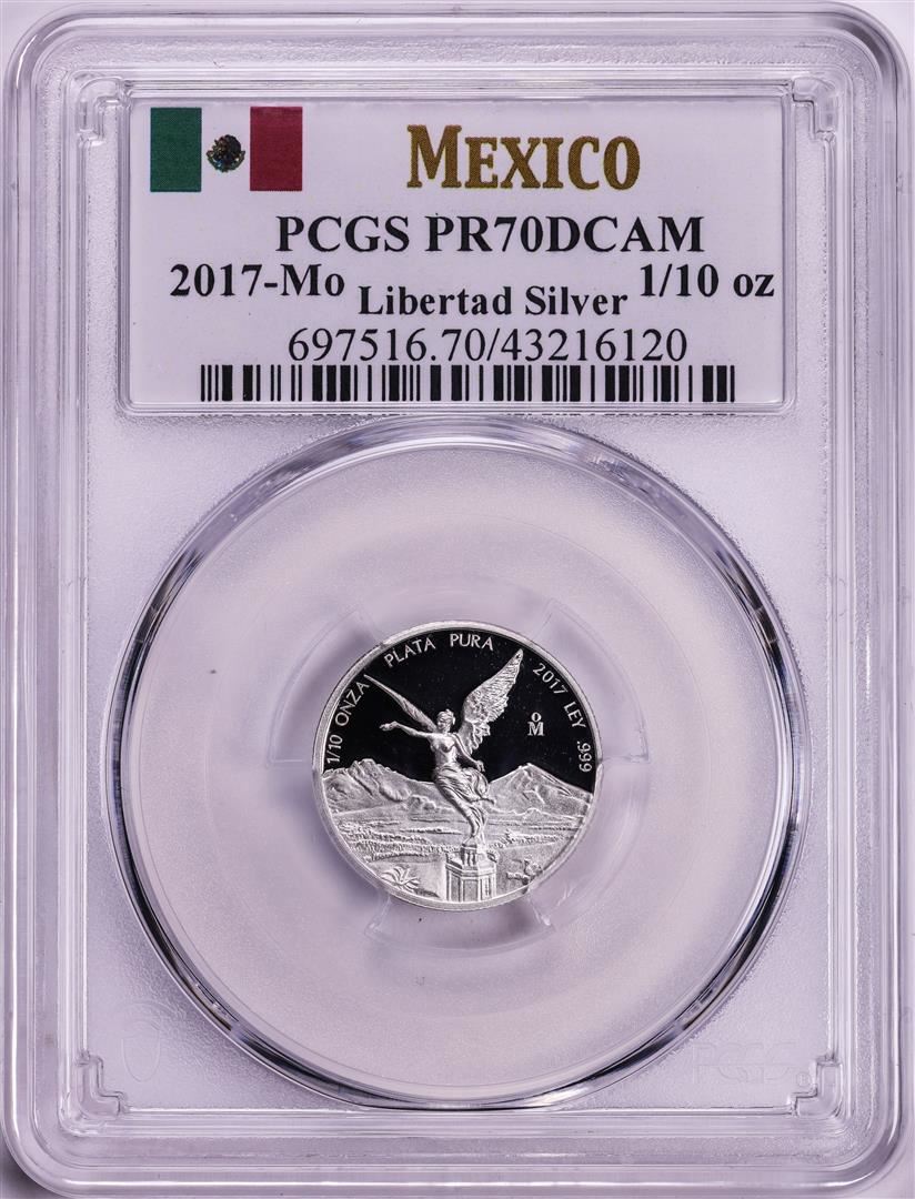 One 2017-Mo Mexico Proof 1/10 oz Silver Libertad Coin PCGS PR70DCAM. PCGS Graded.