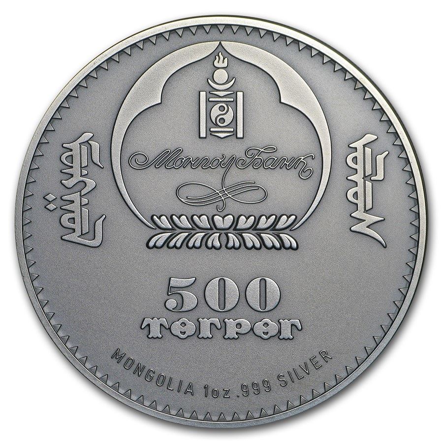 2017 Mongolia 1 oz Silver High Relief Animals (Snow Leopard)