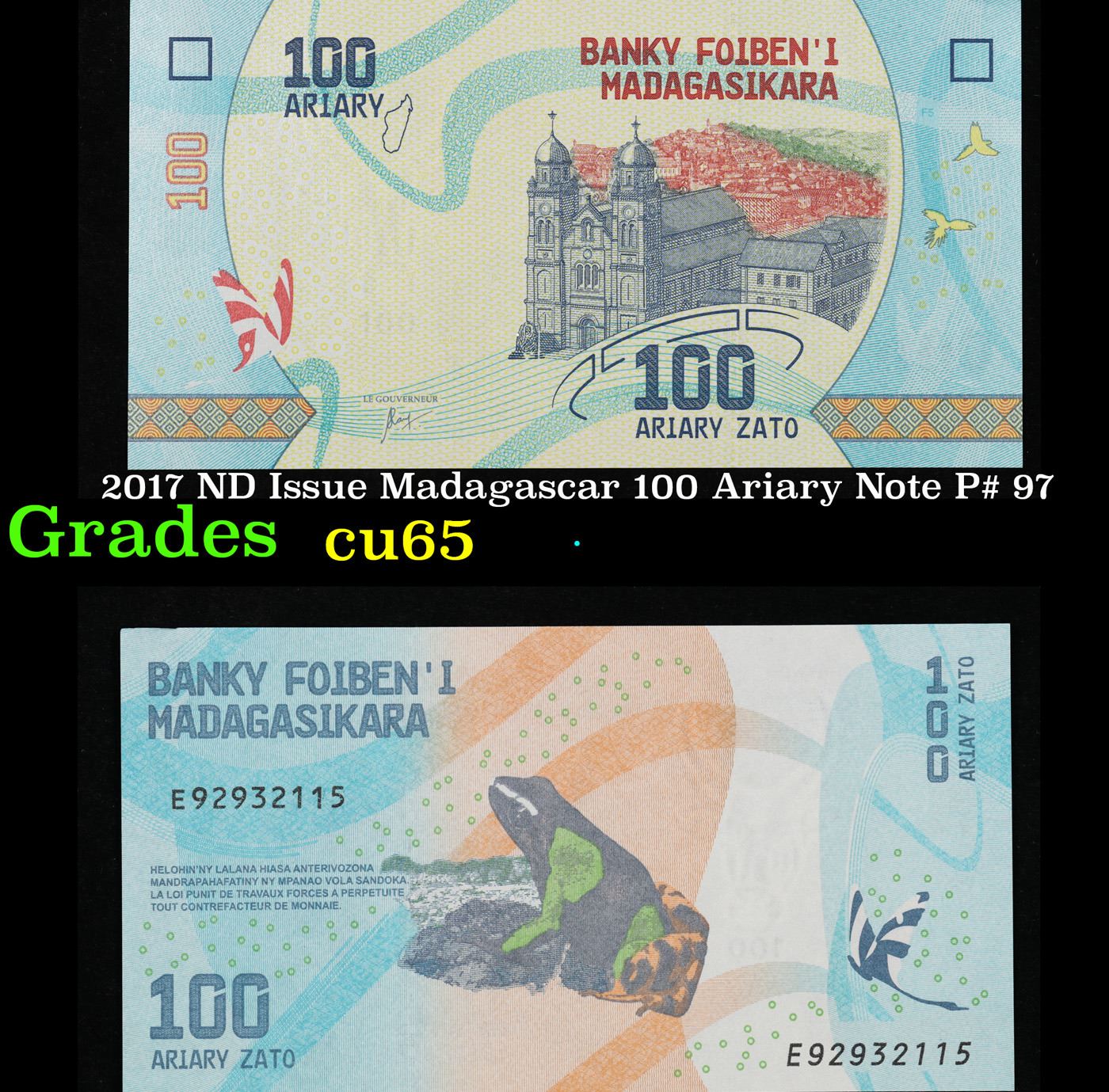 2017 ND Issue Madagascar 100 Ariary Note P# 97 Grades Gem CU.