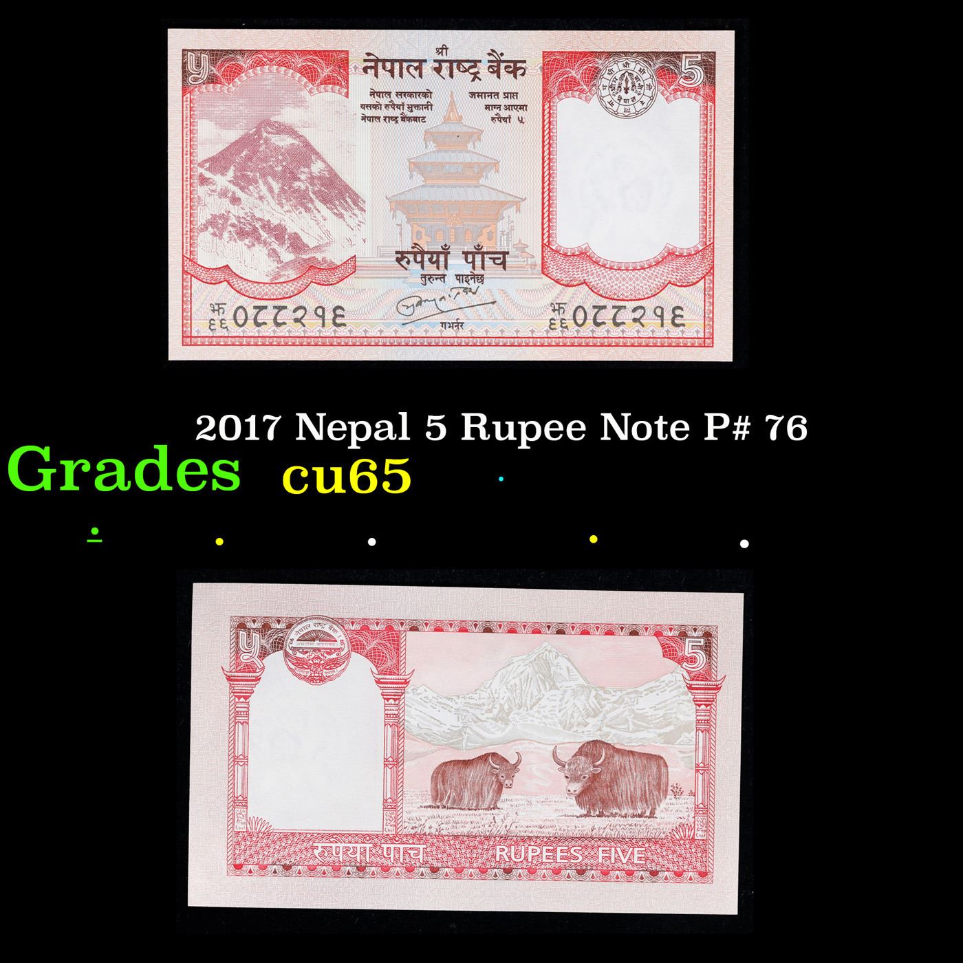 2017 Nepal 5 Rupee Note P# 76 Grades Gem CU.