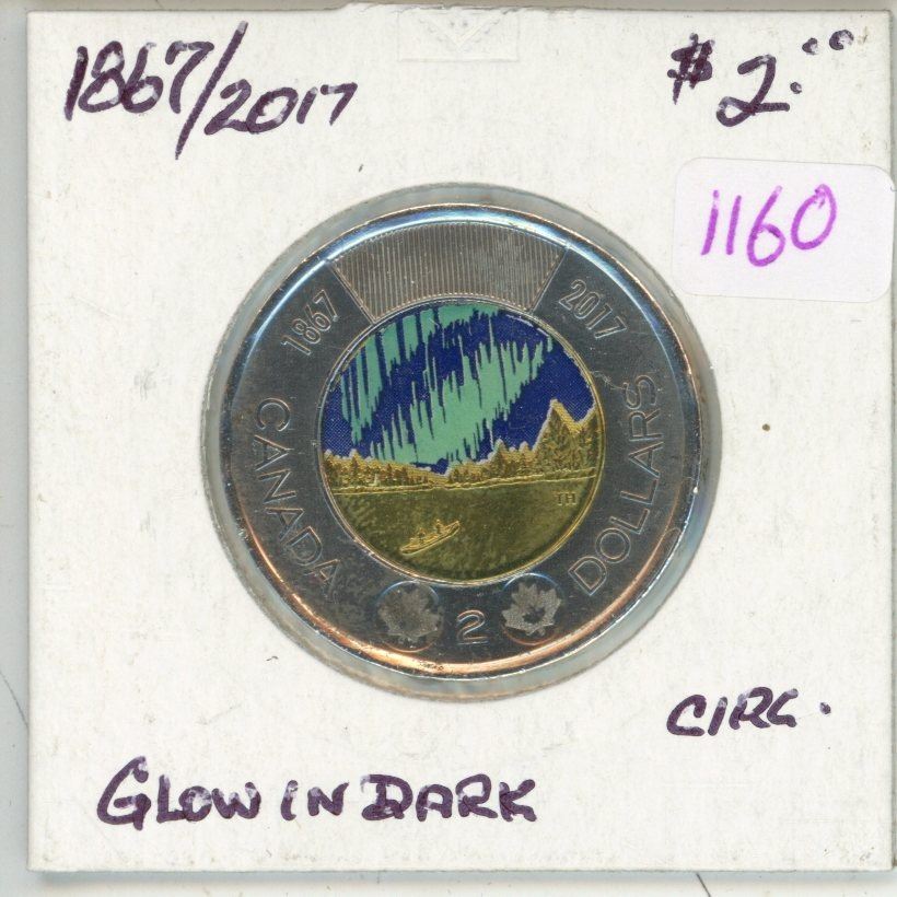 2017 "Northern Lights - colored" Canadian 2 dollar toonie coin