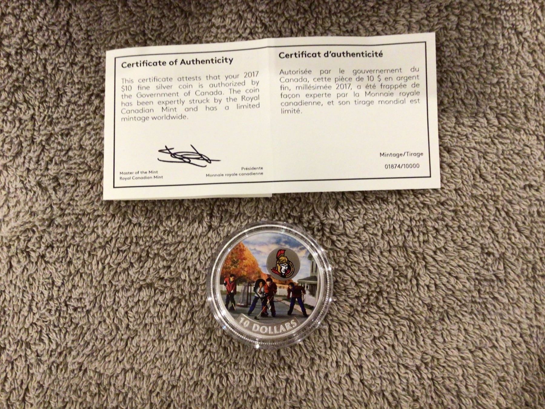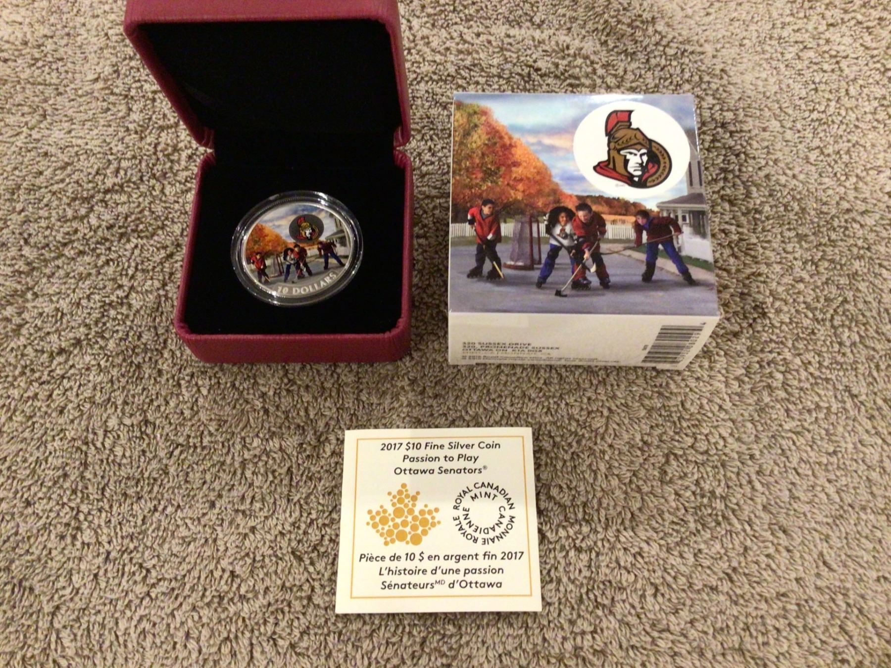 2017 Ottawa Senators - .9999 silver $10 Passion to Play coin in original box with COA. RCM