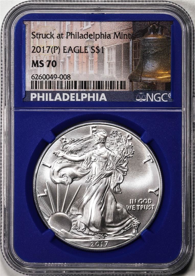 2017(P) $1 American Silver Eagle Coin NGC MS70 Struck at Philadelphia