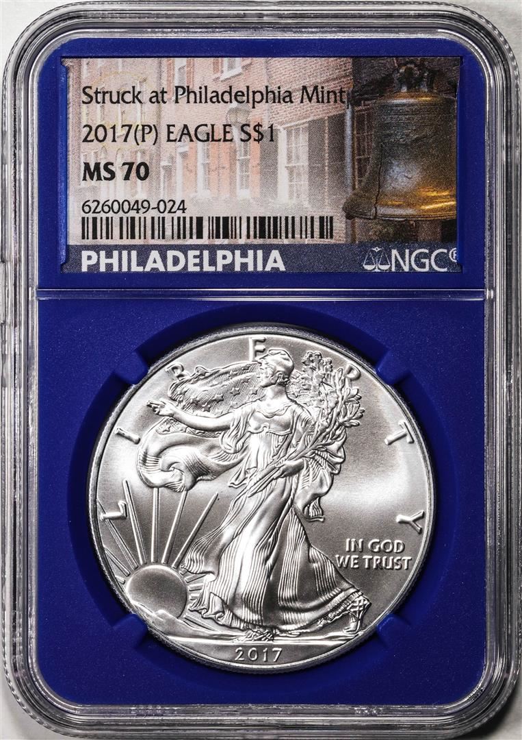 2017(P) $1 American Silver Eagle Coin NGC MS70 Struck at Philadelphia