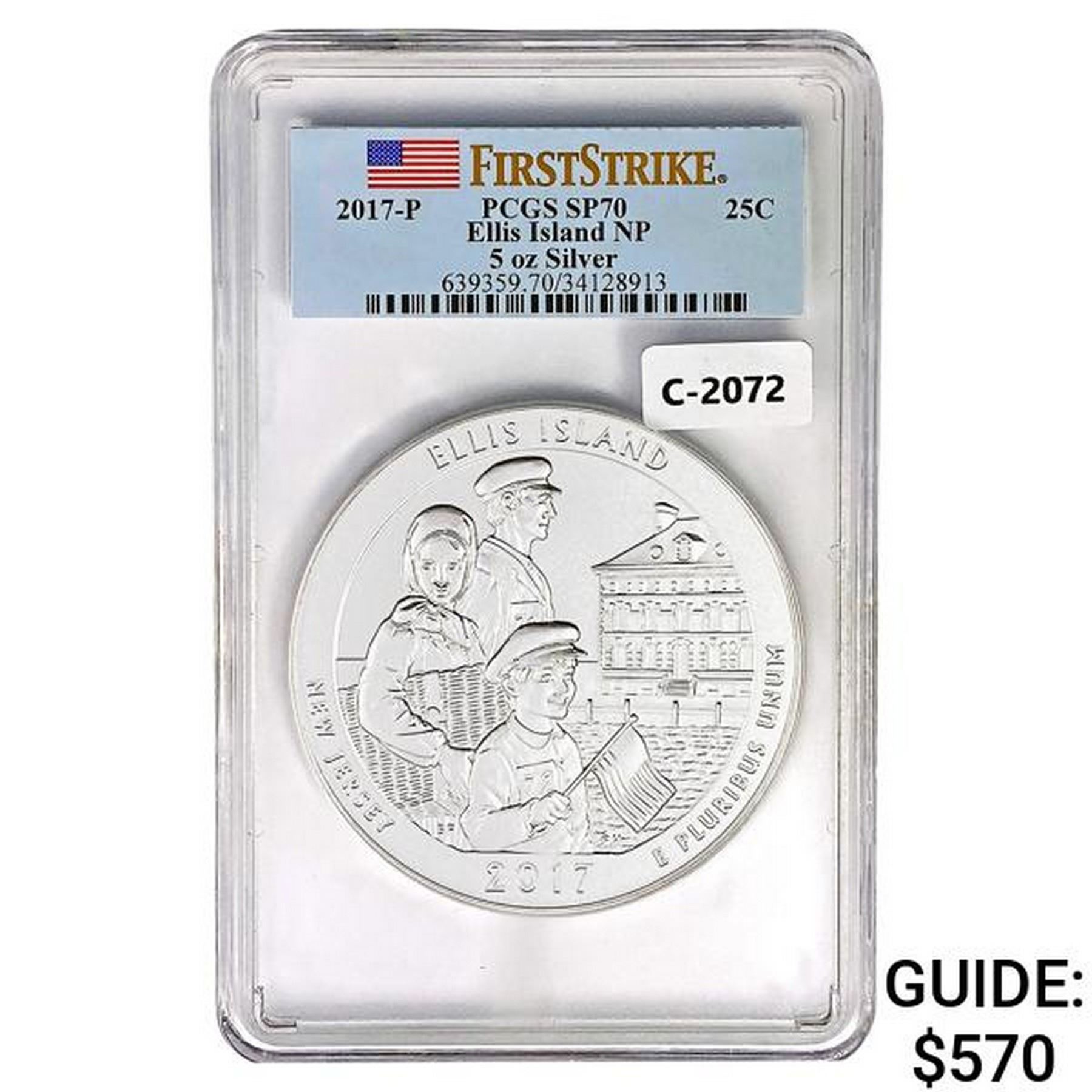 2017-P 25C ATB US 5oz Silver Ellis Island PCGS SP70