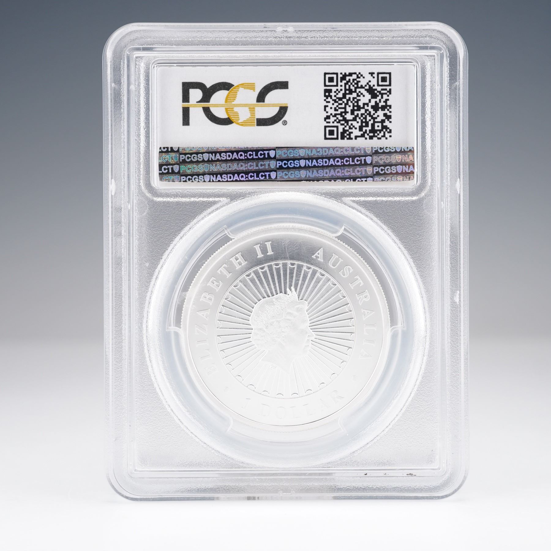 An Australian silver coin issue from the Perth Mint, struck in 2017 to commemorate the Year of the Rooster. The composition is one ounce of .9999 fine silver. The obverse displays the definitive regal effigy of Queen Elizabeth II, encircled with ELIZABETH II, AUSTRALIA, and 1 DOLLAR. The reverse features a sophisticated design incorporating a genuine opal inlay within the central motif of a rooster. It bears the "P" mint mark by the surrounding inscriptions. Encapsulated and certified by PCGS for authenticity and preservation.