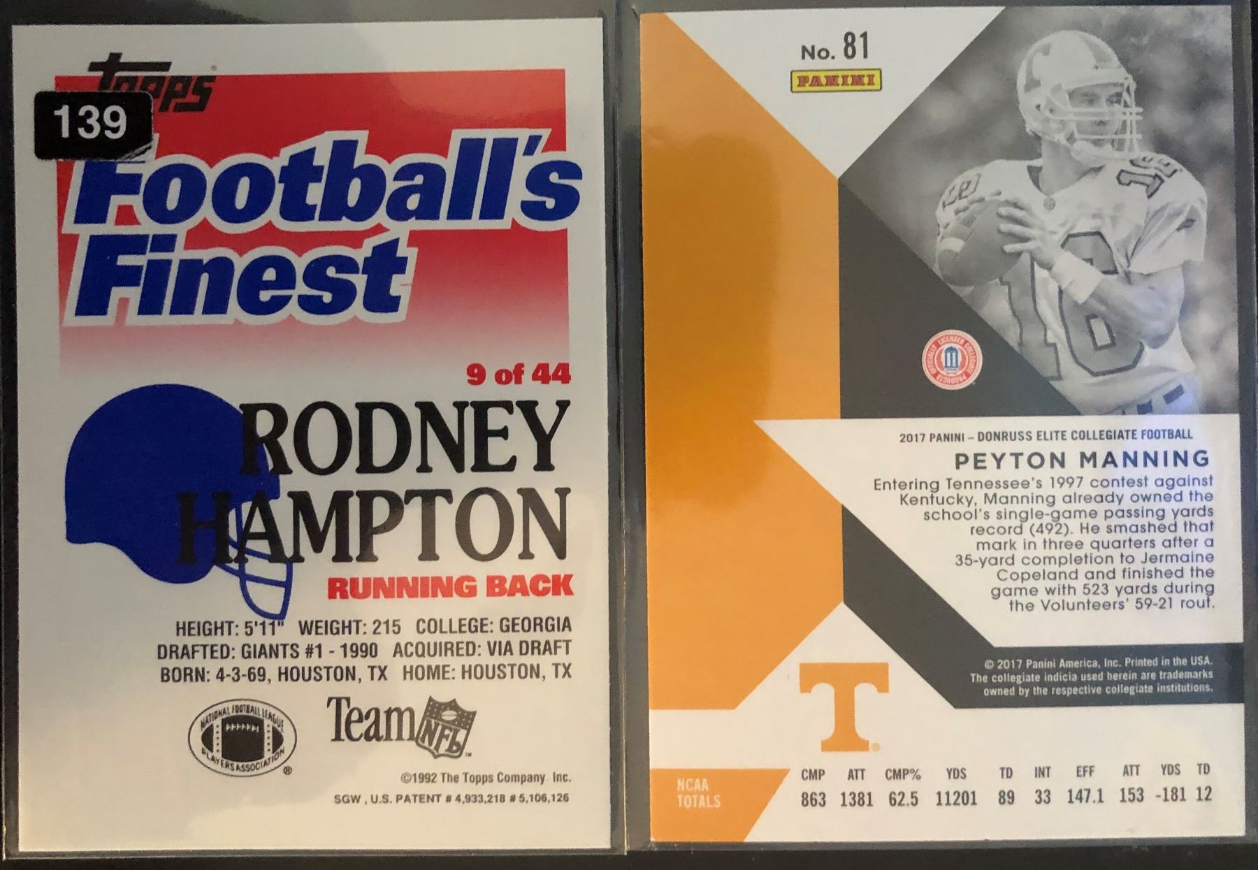 1992 Topps Football's Finest Rodney Hampton Limited Edition #9