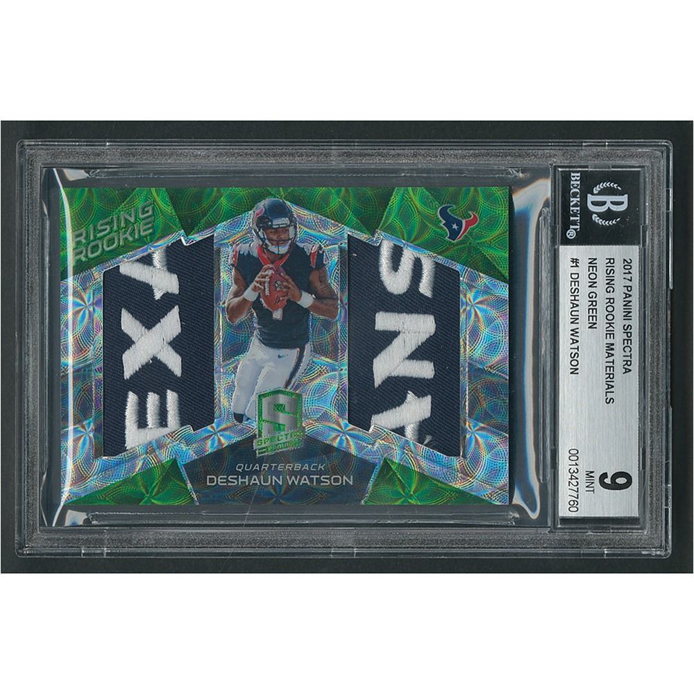 Graded by BGS MINT 9. Uncommon player-worn patch relic card of Houston Texans quarterback Deshaun Watson, numbered 4/25, featuring dual patch swatches from the Texans chest logo.