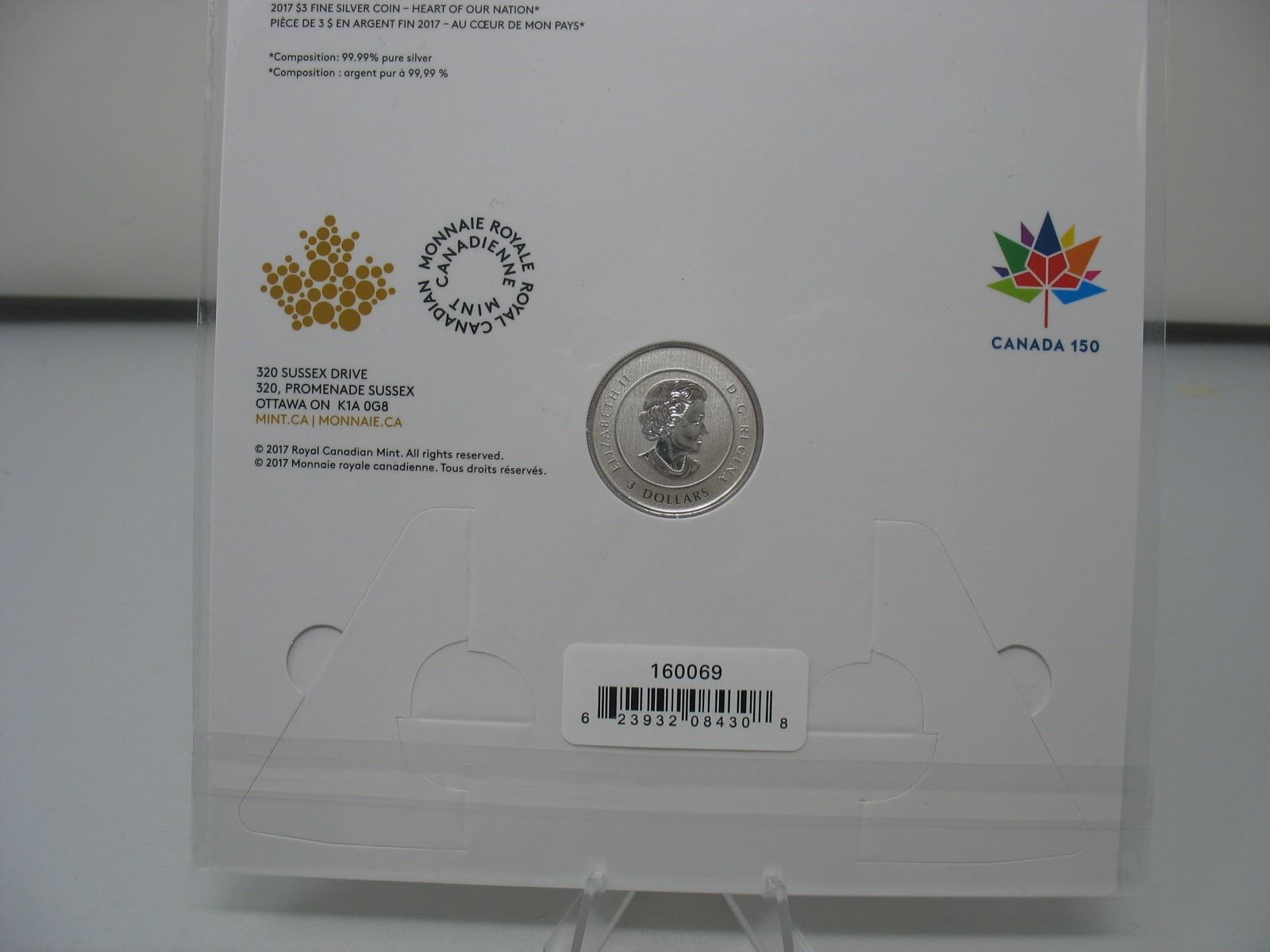 2017 ROYAL CANADIAN MINT SILVER $3.00 COIN - HEART of OUR NATION
