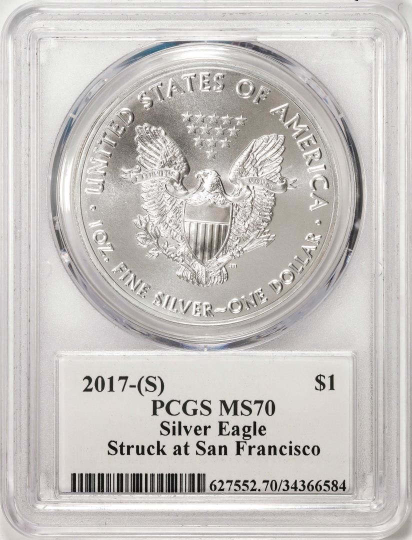 2017-(S) $1 American Silver Eagle Coin PCGS MS70 Struck at San Francisco Premier