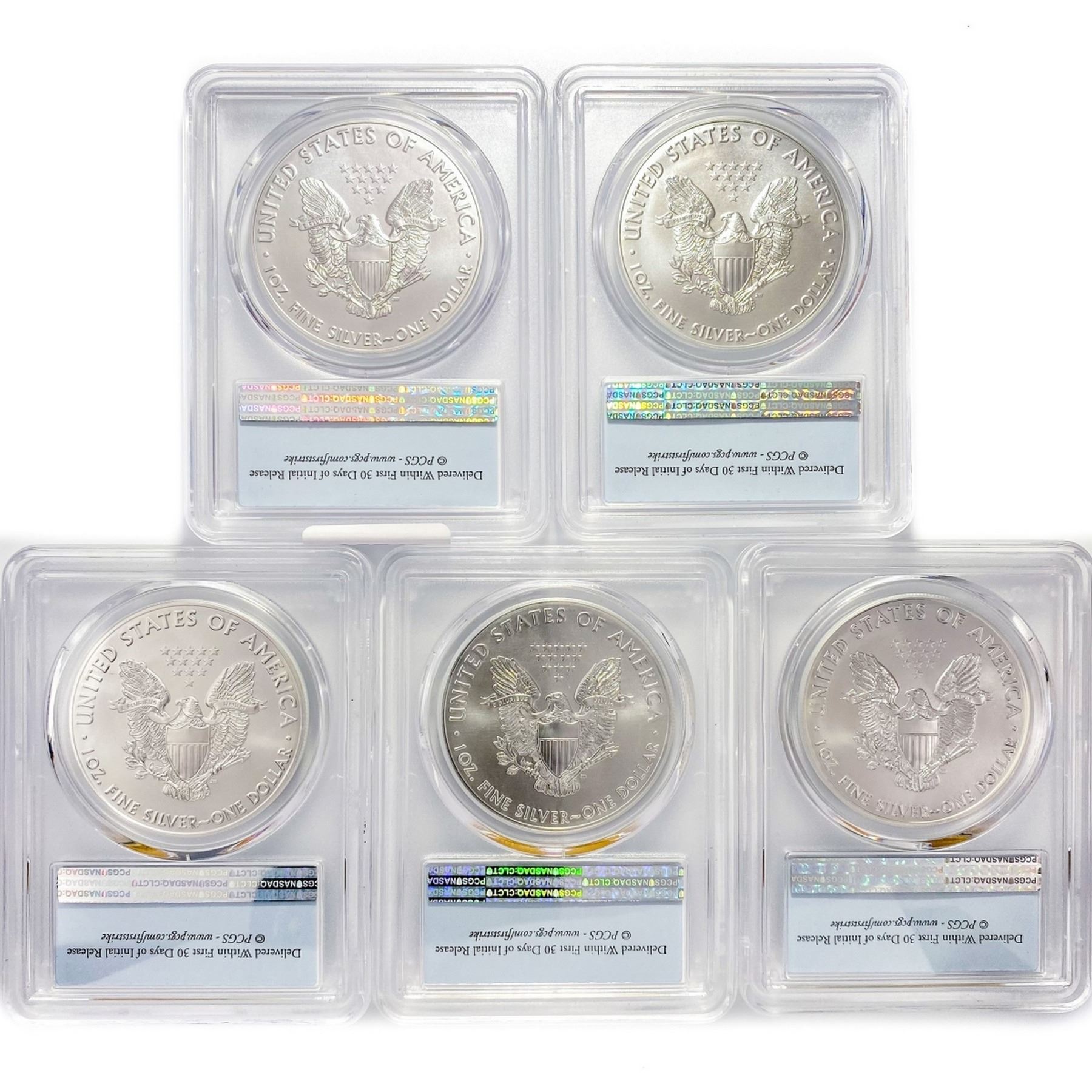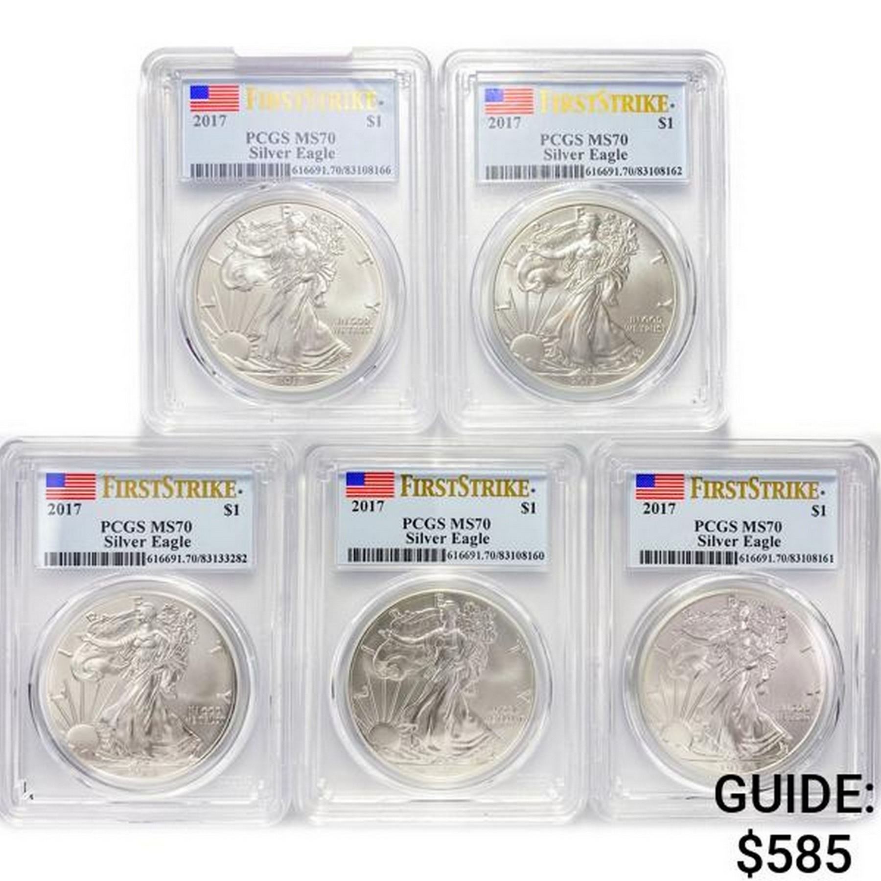 2017 Set (5) American Silver Eagles PCGS MS70