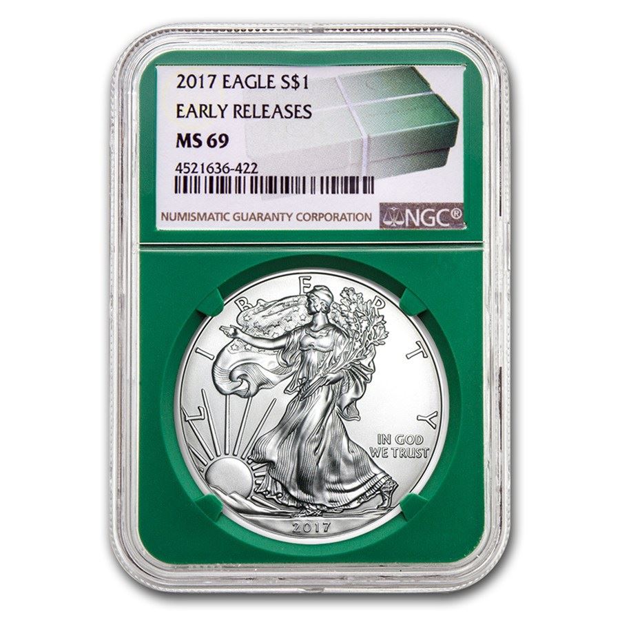 2017 Silver American Eagle MS-69 NGC (ER, Green Holder)