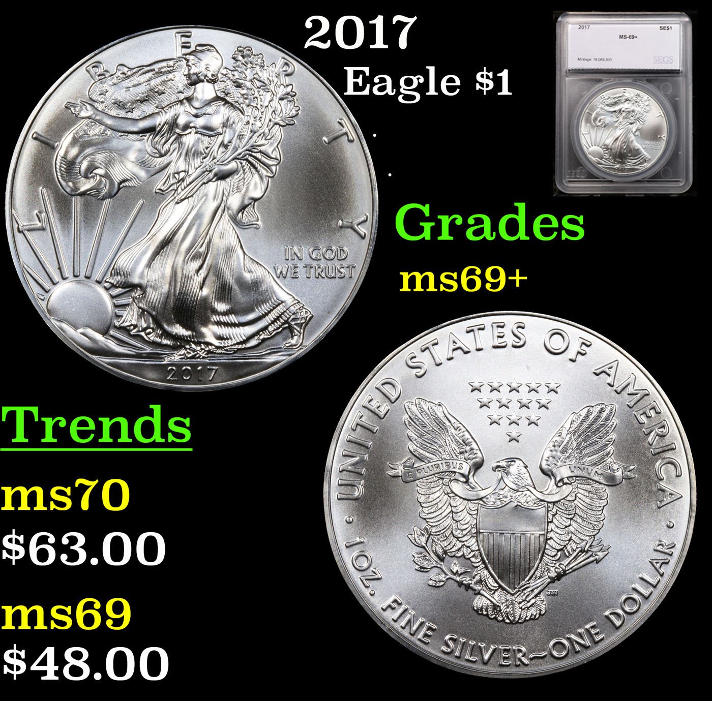 2017 Silver Eagle Dollar $1 Graded ms69+ By SEGS.