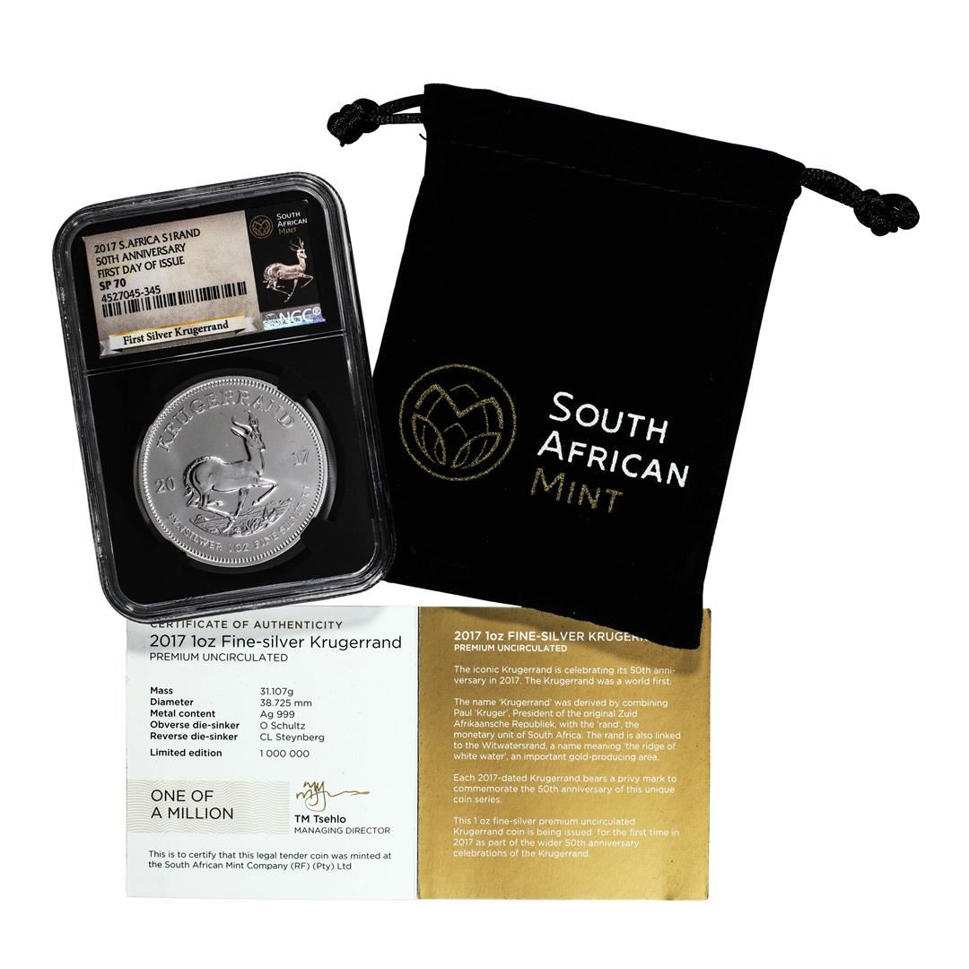 2017 South Africa Krugerrand Silver Coin NGC SP70 First Day Of Issue With COA