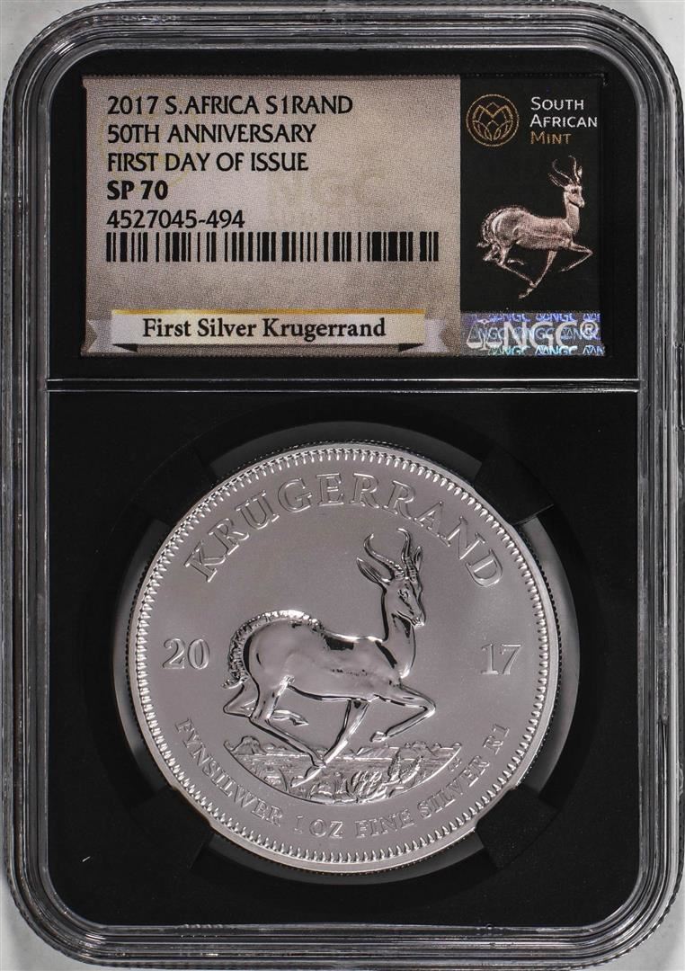 2017 South Africa Krugerrand Silver Coin NGC SP70 First Day Of Issue With COA