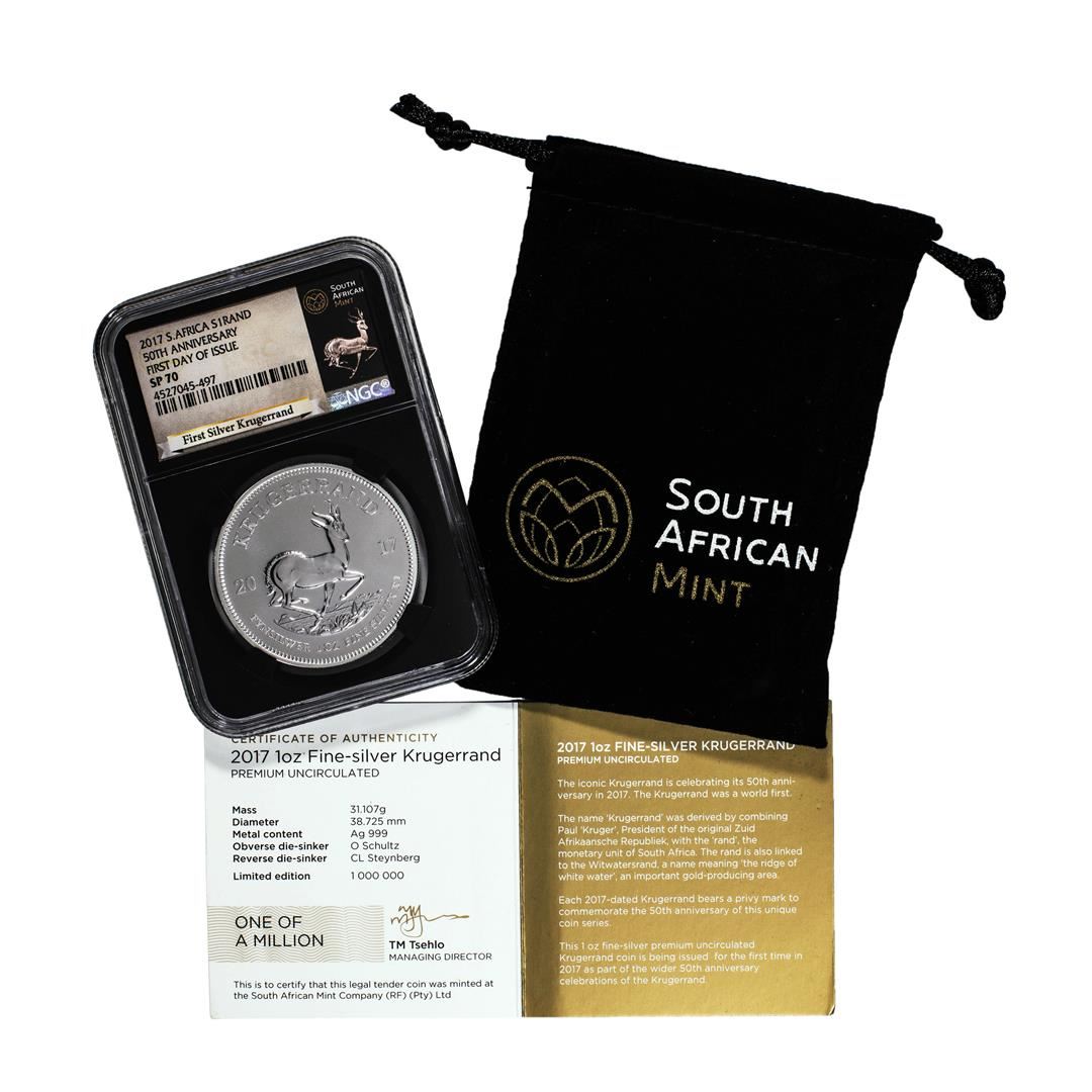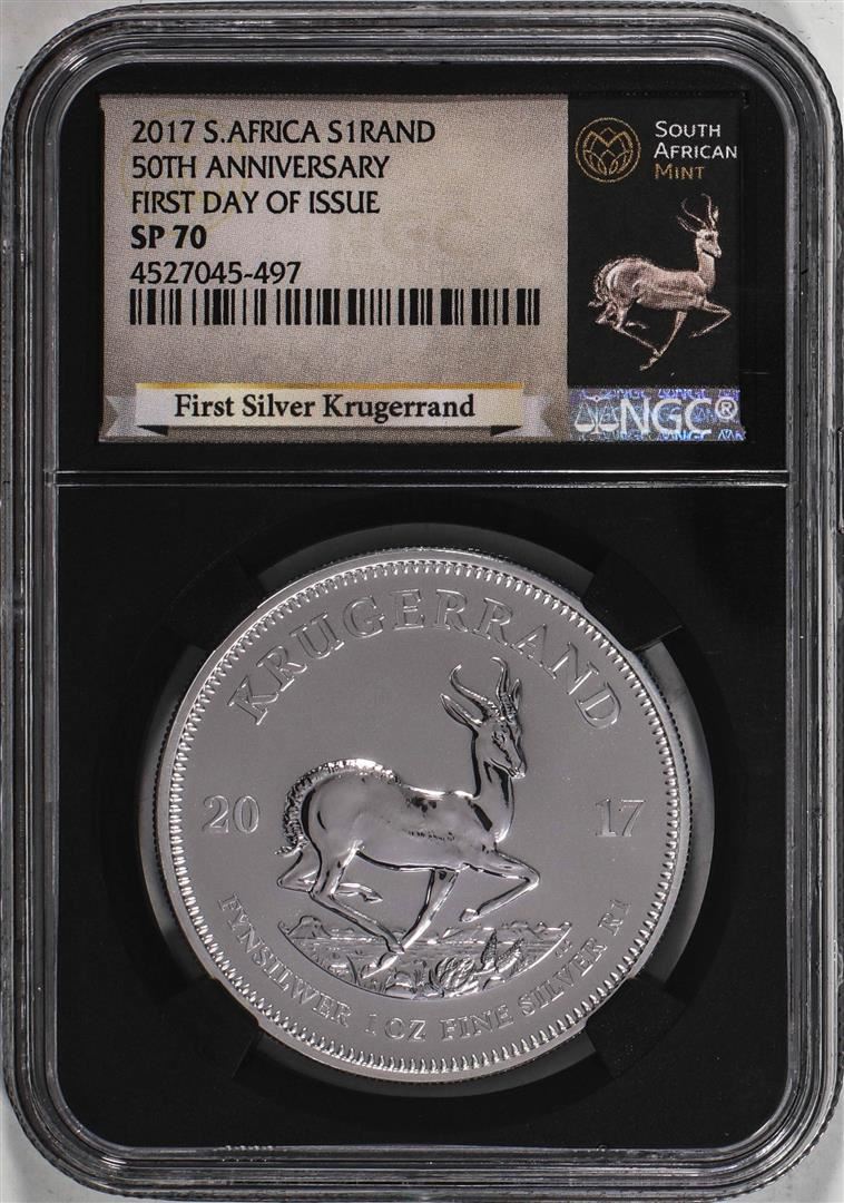 2017 South Africa Krugerrand Silver Coin NGC SP70 First Day Of Issue With COA