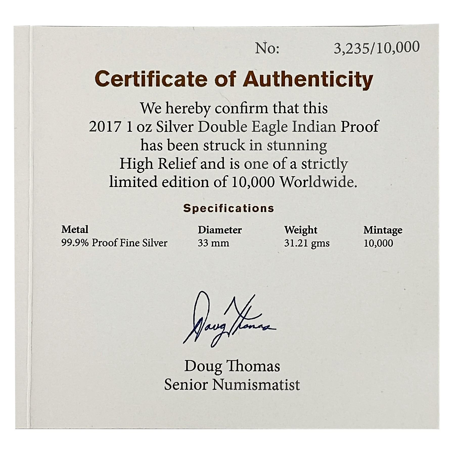 2017 St. Gaudens Dbl Eagle Indian High Relief NGC PF70 DCAM