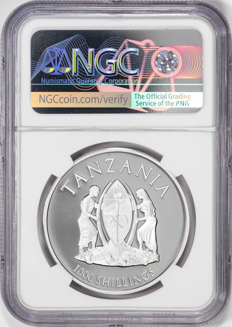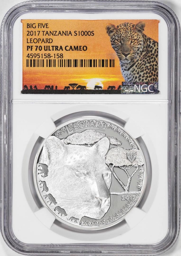 One 2017 Tanzania Proof 1000 Shillings Leopard Silver Coin NGC PF70 Ultra Cameo. NGC Certified.