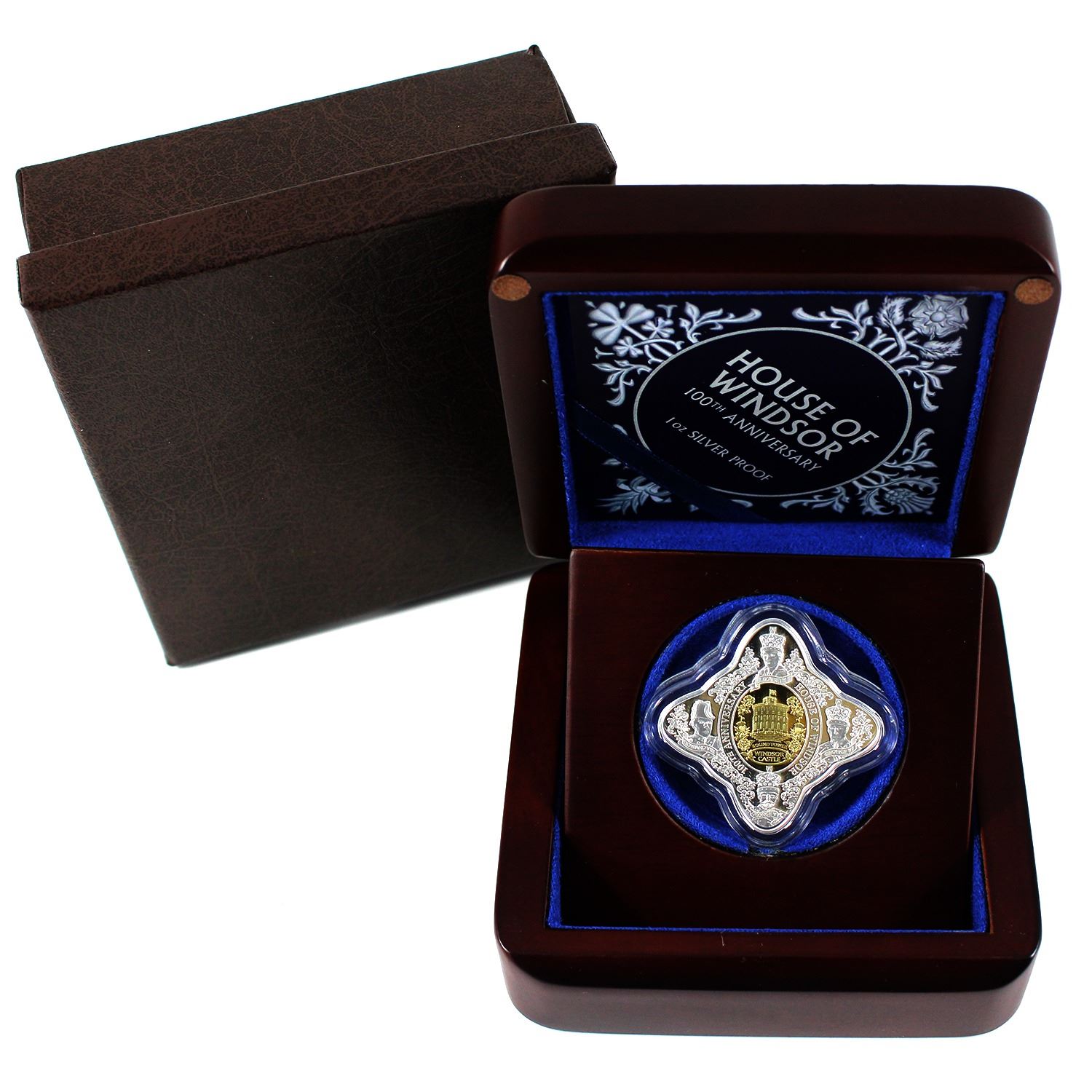 Tokelau 2017 $1 House of Windsor 100th Anniversary 1oz Fine Silver Proof Coin with Gold Plating in Deluxe Display Box and Case. Limited Mintage of 900! (TAX Exempt)