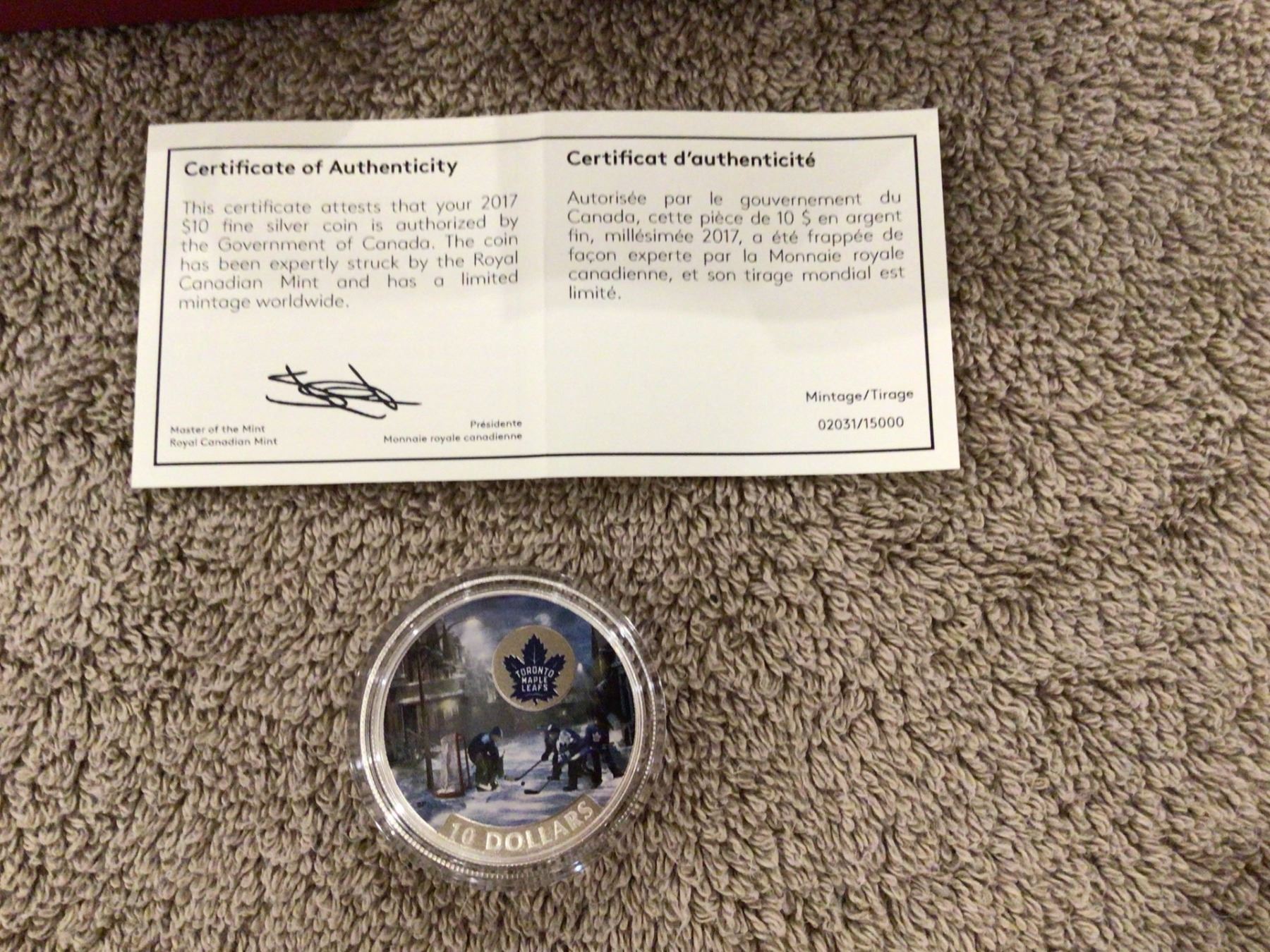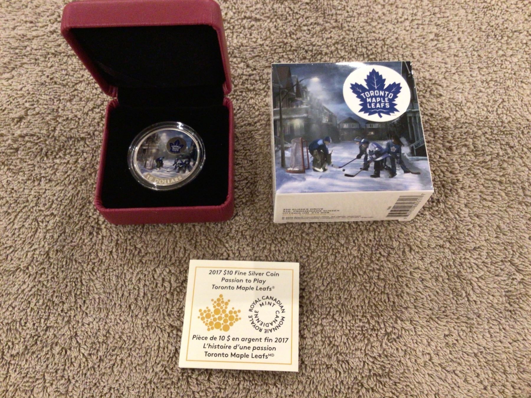 2017 Toronto Maple Leafs - .9999 silver $10 Passion to Play coin in original box with COA. RCM