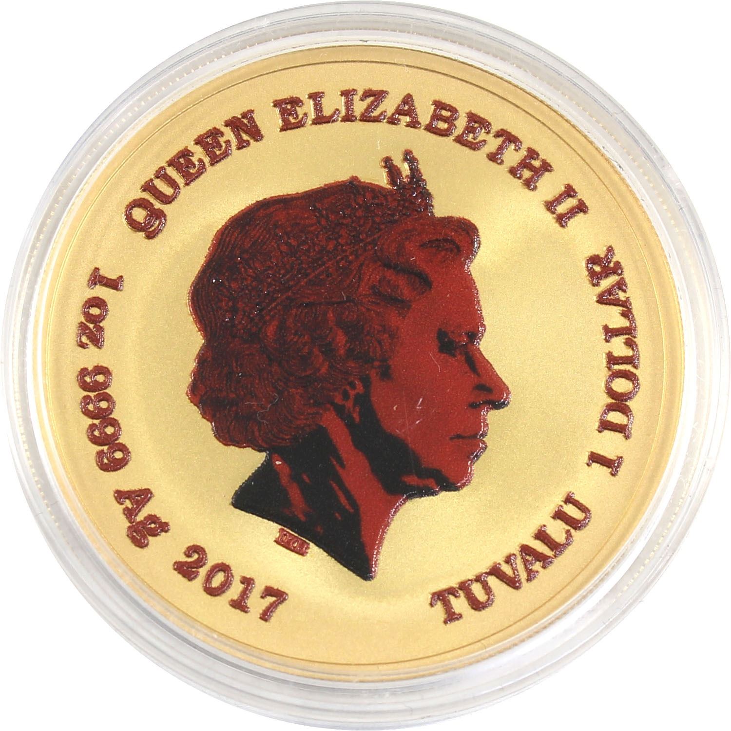 2017 Tuvalu 1oz Coloured & Gilded .9999 Fine Silver Marvel Spiderman in Capsule (TAX Exempt).