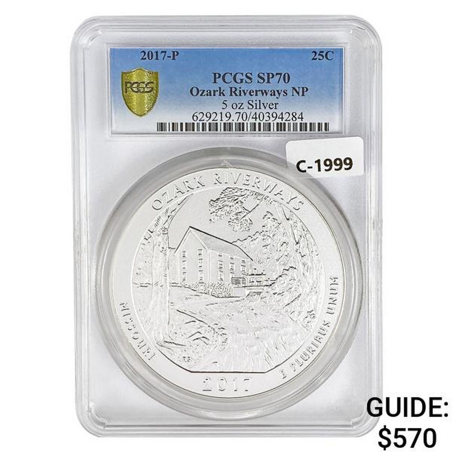 2017 US 5oz Silver Ozark Riverways Round PCGS SP70