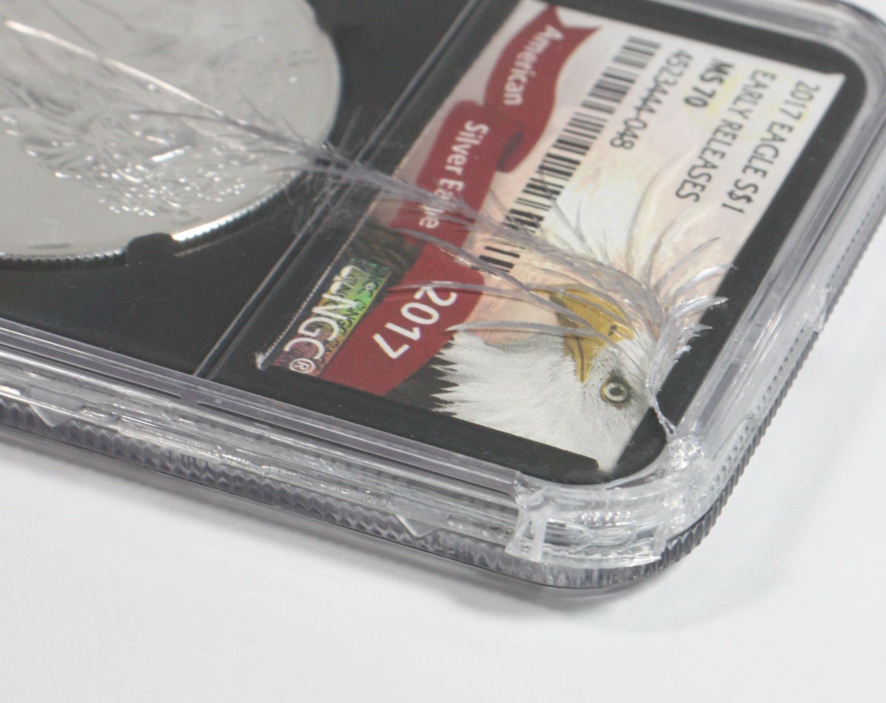 DAMAGED* GRADED MS70 BY NGS. CASE IS CRACKED AND CHIPPED.