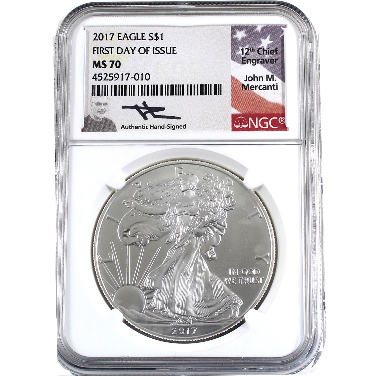 2017 USA 1oz American Eagle NGC Certified MS-70 First Day of Issue, Authentic Hand-Signed (toned). TAX Exempt