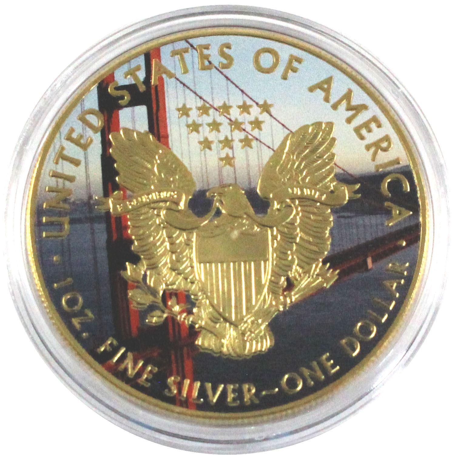 2017 USA 1oz California State Seal Coloured .999 Fine Silver Eagle in Capsule. (TAX Exempt)